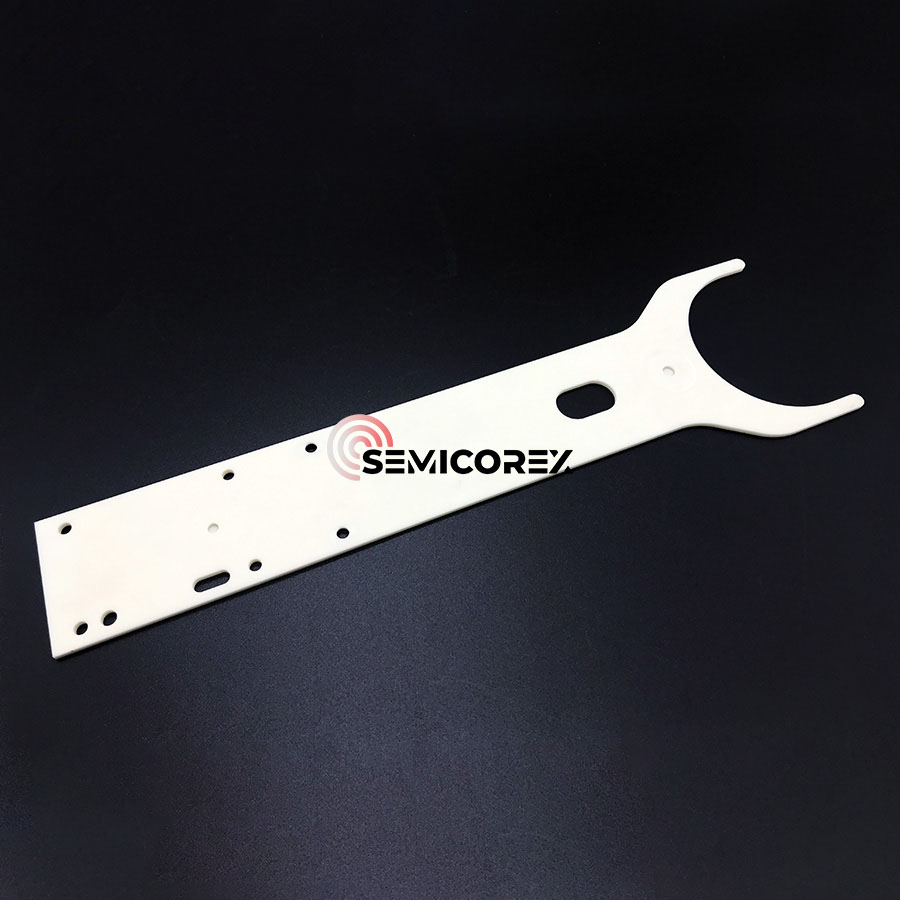 செமிகோரெக்ஸ் அலுமினா பீங்கான் கை என்பது ஒரு பொறிக்கப்பட்ட அங்கமாகும், இது குறைக்கடத்தி பயன்பாடுகளுக்கான மிக உயர்ந்த விவரக்குறிப்புகளுக்கு உருவாக்கப்பட்டுள்ளது. உயர் தூய்மை அலுமினா (அலோ) இலிருந்து தயாரிக்கப்படுகிறது, இது ஒரு ரோபோ கை ஆகும், இது இயந்திர வலிமை, வெப்ப நிலைத்தன்மை மற்றும் வேதியியல் எதிர்ப்பு ஆகியவற்றின் தனித்துவமான கலவையைக் கொண்டுள்ளது. கை செதில் கையாளுதலுக்கு மட்டும் பயன்படுத்த வடிவமைக்கப்பட்டுள்ளது மட்டுமல்லாமல், மேம்பட்ட புனையமைப்பு தளங்களில் செயல்முறை ஆதரவை வழங்க வேண்டும். மாசுபாடு அல்லது சேதம் இல்லாமல் செதில்கள் மாற்றப்பட்டு, நிலைநிறுத்தப்பட்டு செயலாக்கப்படுவதை இது உறுதி செய்ய வேண்டும்; செயல்முறையின் மகசூல் மற்றும் நம்பகத்தன்மையை மேம்படுத்துதல்.