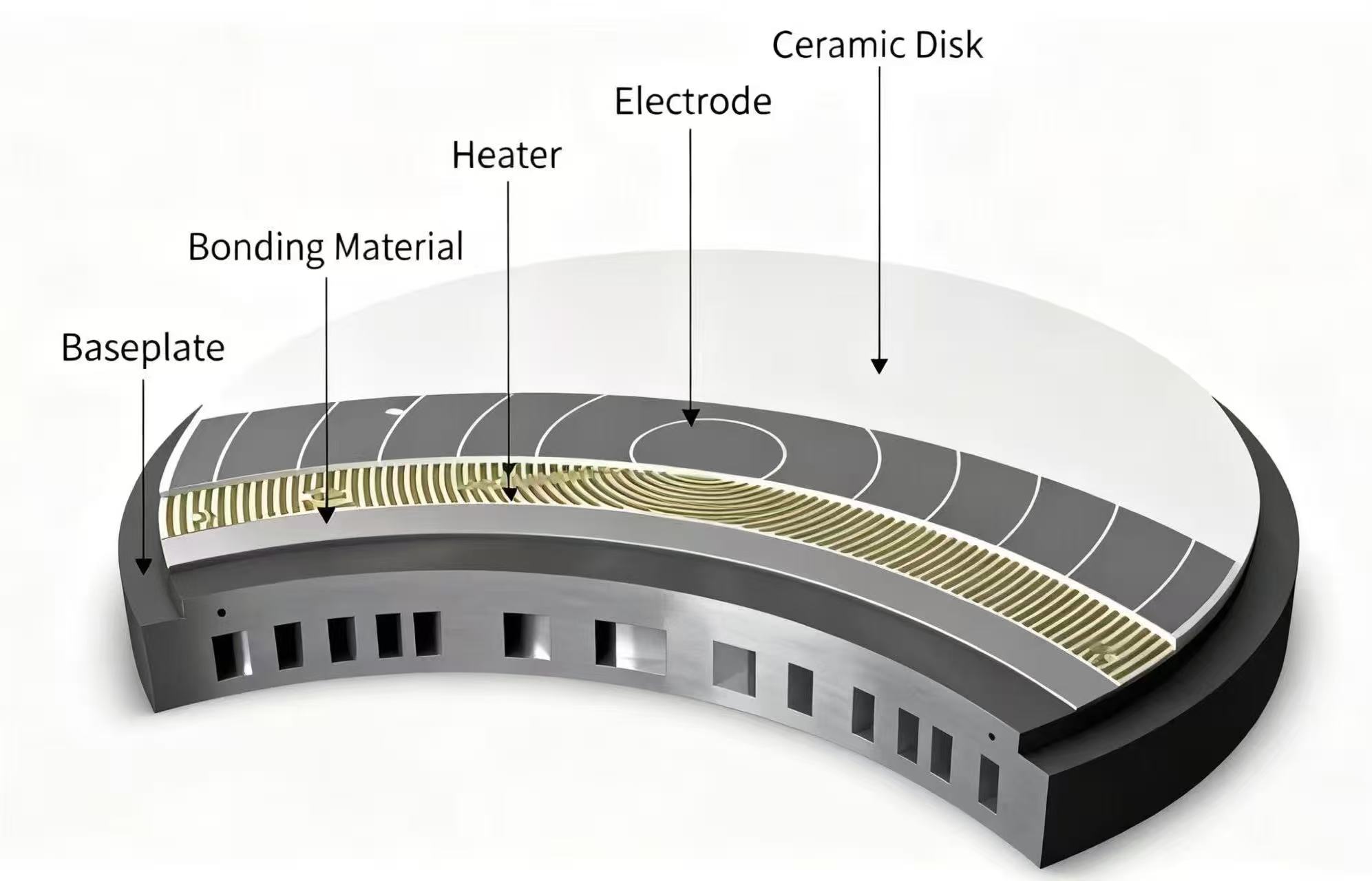 பீங்கான் மின்னியல் சக்ஸ்மின்முனைகள் மற்றும் செதில்களுக்கு இடையில் உருவாக்கப்படும் மின்னியல் புலத்தைப் பயன்படுத்தி செதில்களை இறுக்கி சரிசெய்யும் துல்லியமான கூறுகளாகும். செமிகண்டக்டர்கள், பிளாட் பேனல் டிஸ்ப்ளேக்கள் மற்றும் ஒளியியல் போன்ற துறைகளில் அவை பரவலாகப் பயன்படுத்தப்படுகின்றன, மேலும் அவை PVD சாதனங்கள், எச்சிங் மெஷின்கள் மற்றும் அயன் இம்ப்ளாண்டர்கள் போன்ற உயர்நிலை உபகரணங்களின் முக்கிய கூறுகளாகும்.