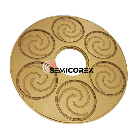 ஒரு MOCVD அமைப்பில், சஸ்செப்டர் என்பது எபிடாக்சியல் வளர்ச்சியின் போது செதில்கள் வைக்கப்படும் மைய தளமாகும். துல்லியமான வெப்பநிலை கட்டுப்பாடு, இரசாயன நிலைத்தன்மை மற்றும் எதிர்வினை வாயுக்களில் இயந்திர நிலைத்தன்மை ஆகியவை 1200 °C க்கும் அதிகமான வெப்பநிலையில் பராமரிக்கப்படுவது மிகவும் முக்கியமானது. செமிகோரெக்ஸ் CVD TaC பூசப்பட்ட சஸ்செப்டர், பொறிக்கப்பட்ட கிராஃபைட் அடி மூலக்கூறை அடர்த்தியான, சீரானதாக இணைப்பதன் மூலம் அதை நிறைவேற்றும் திறன் கொண்டது.டான்டலம் கார்பைடு (TaC) பூச்சுஇரசாயன நீராவி படிவு (CVD) மூலம் செய்யப்படுகிறது.