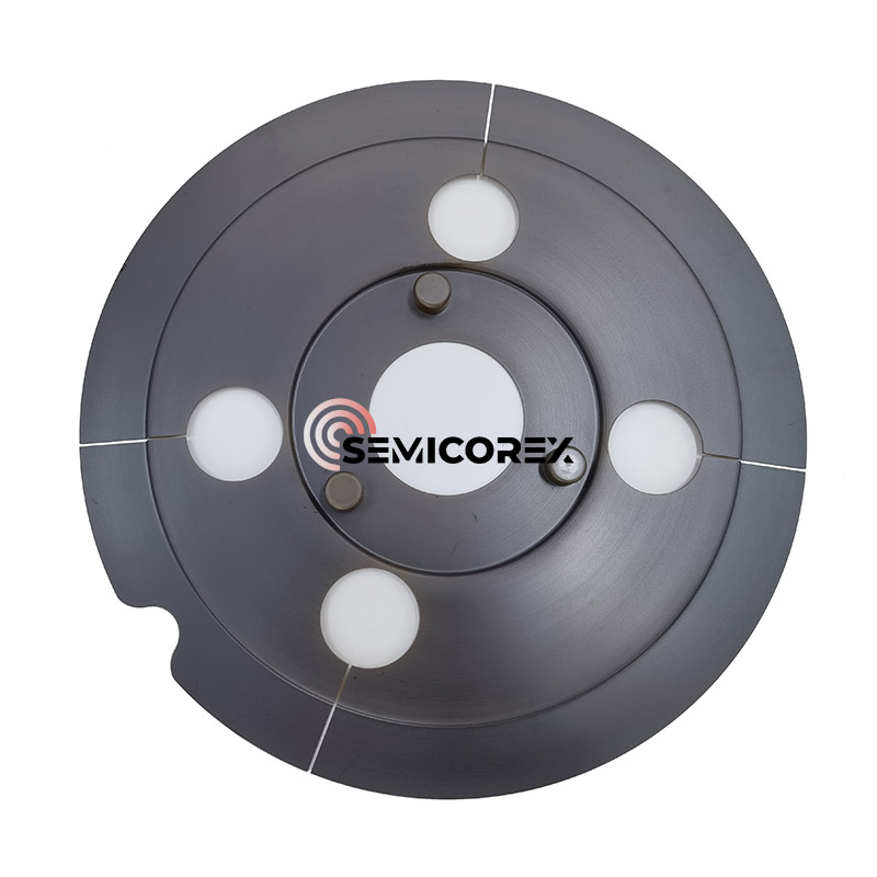 கூறுகளின் வட்டு அமைப்பு, துல்லியமாக துளையிடப்பட்ட துளைகளுடன் முழுமையானது, செயல்முறை அறைகள் முழுவதும் வாயுக்கள் மற்றும் திரவங்களின் கட்டுப்படுத்தப்பட்ட ஓட்டத்தை அனுமதிக்கிறது. பயன்பாட்டைப் பொறுத்து, துளைகளை செதில் செயல்பாட்டின் போது சுத்தமான மற்றும் நிலையான சூழலுக்கு துணை தயாரிப்புகள் அல்லது வடிகால் ஓட்டத்தை நிர்வகிக்க கட்டமைக்க முடியும். எபிடாக்ஸி பயன்பாட்டில், எடுத்துக்காட்டாக, SiC Fin ஆனது செயல்முறை வாயுக்கள் அல்லது மின்தேக்கி ஓட்டங்களை இயக்குவதில் உதவுகிறது, இதன் மூலம் பட சீரான தன்மையை அதிகரிக்கிறது மற்றும் துகள் மாசுபாட்டைக் குறைக்கிறது. எட்ச் கருவிகளில், இரசாயனச் சிதைவிலிருந்து பாதிக்கப்படக்கூடிய அறைக் கூறுகளைப் பாதுகாக்கும் வினைத்திறன் இனங்கள் மற்றும் திரவ துணை தயாரிப்புகளை பாதுகாப்பாகவும் திறமையாகவும் அகற்றுவதற்கு இது பயனுள்ளதாக இருக்கும்.