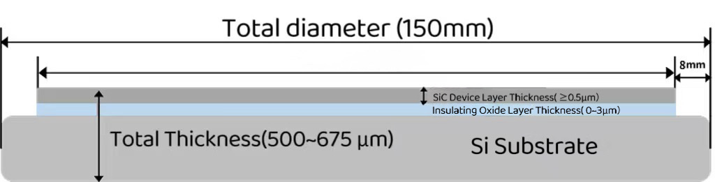 சிலிக்கான் அடி மூலக்கூறு மற்றும் SiC சாதன அடுக்குக்கு இடையில் அமைந்துள்ள, இன்சுலேடிங் ஆக்சைடு அடுக்கு என்பது SICOI செதில்களின் நடு அடுக்கு ஆகும். மேல் மற்றும் கீழ் அடுக்குகளுக்கு இடையில் தற்போதைய பாதைகளை தனிமைப்படுத்துவதன் மூலம், இன்சுலேடிங் ஆக்சைடு அடுக்கு குறுகிய சுற்றுகளின் அபாயத்தை திறம்பட குறைக்கிறது மற்றும் குறைக்கடத்தி சாதனங்களின் நிலையான மின் செயல்திறனை உத்தரவாதம் செய்கிறது. அதன் குறைந்த உறிஞ்சுதல் பண்பு காரணமாக, இது ஒளியியல் சிதறலைக் கணிசமாகக் குறைக்கும் மற்றும் குறைக்கடத்தி சாதனங்களின் ஆப்டிகல் சிக்னல் பரிமாற்ற செயல்திறனை மேம்படுத்துகிறது.
