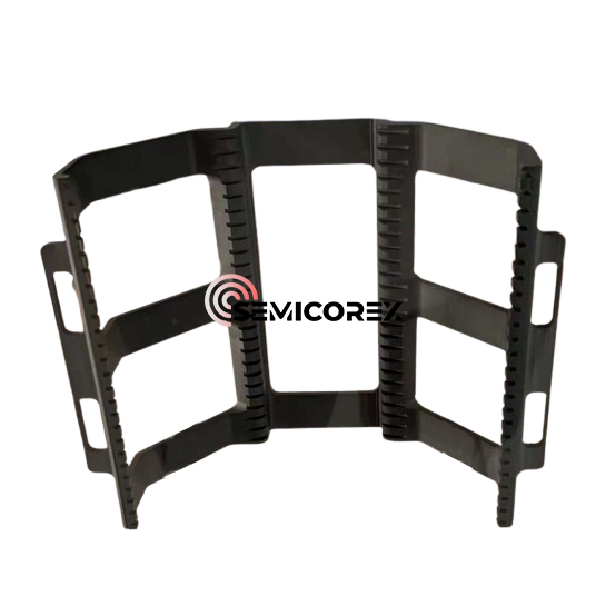 செமிகோரெக்ஸ் சிலிக்கான் கார்பைடு வேஃபர் படகு என்பது செமிகண்டக்டர் உற்பத்திக்கு அவசியமான ஒரு உயர் செயல்திறன் கூறு ஆகும், குறிப்பாக துல்லியமான வெப்பநிலை கட்டுப்பாடு மற்றும் கட்டமைப்பு ஒருமைப்பாடு தேவைப்படும் பரவல் செயல்முறைகளில். அதன் விதிவிலக்கான வெப்ப கடத்துத்திறன், உடைகள் எதிர்ப்பு மற்றும் இரசாயன நிலைத்தன்மை ஆகியவற்றிற்கு அறியப்பட்ட பொருளான SiC இலிருந்து கட்டப்பட்டது, SiC வேஃபர் படகு உயர் வெப்பநிலை சிகிச்சையின் போது குறைக்கடத்தி செதில்களை திறமையாக கையாளுவதை உறுதி செய்கிறது. இந்தத் தயாரிப்பு, செமிகண்டக்டர் ஃபேப்ரிகேஷன், ஃபோட்டோவோல்டாயிக் உற்பத்தி மற்றும் எலக்ட்ரானிக்ஸ் போன்ற தொழில்களுக்கு ஏற்றதாக இருக்கிறது, அங்கு உற்பத்தி செயல்முறைகளின் தரம் மற்றும் செயல்திறனைப் பராமரிக்க அதிக செயல்திறன் கொண்ட பொருட்கள் முக்கியமானவை.