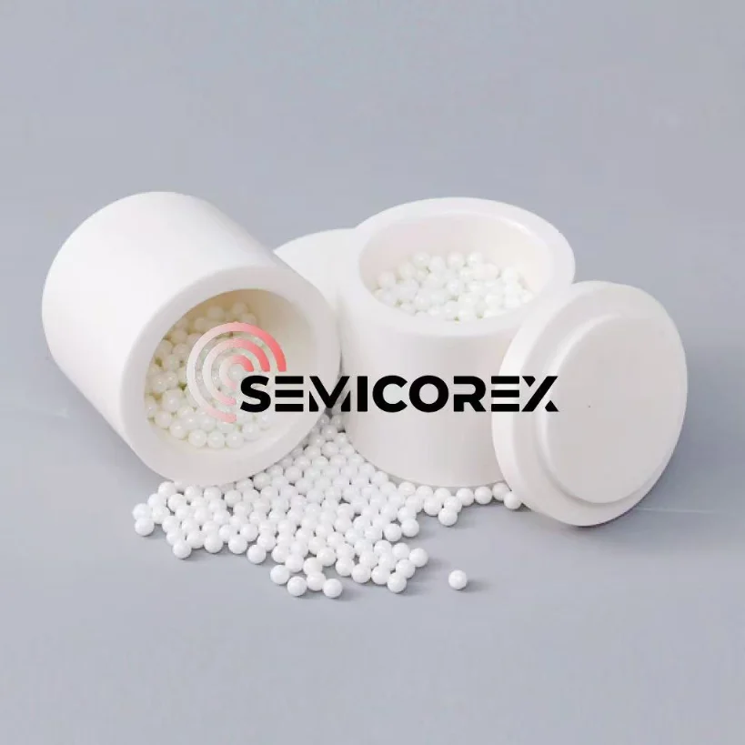 அரைக்கப்பட்ட பொருளின் தூய்மையை அரைக்கும் கொள்கலன் பாதிப்பதைத் தடுக்க, செமிகோரெக்ஸ், சிர்கோனியா அரைக்கும் ஜாடிகளின் மூலப்பொருள் தேர்வு மற்றும் செயலாக்க முறைகளில் கடுமையான கட்டுப்பாடுகளைப் பயன்படுத்துகிறது. உயர்-தூய்மை சிர்கோனியா பவுடரால் செய்யப்பட்ட சிர்கோனியா அரைக்கும் ஜாடிகள், அதிக வெப்பநிலை மற்றும் அதிவேக இயக்க நிலைமைகளின் கீழ் பொருட்கள் தேவையற்ற மாசுபடுவதைத் தவிர்க்கலாம். அவை சிறந்த இரசாயன அரிப்பு எதிர்ப்பைக் கொண்டுள்ளன, இது செயல்பாட்டின் போது அரைக்கும் பொருட்களுடன் இரசாயன எதிர்வினைகளைக் குறைக்கும்.